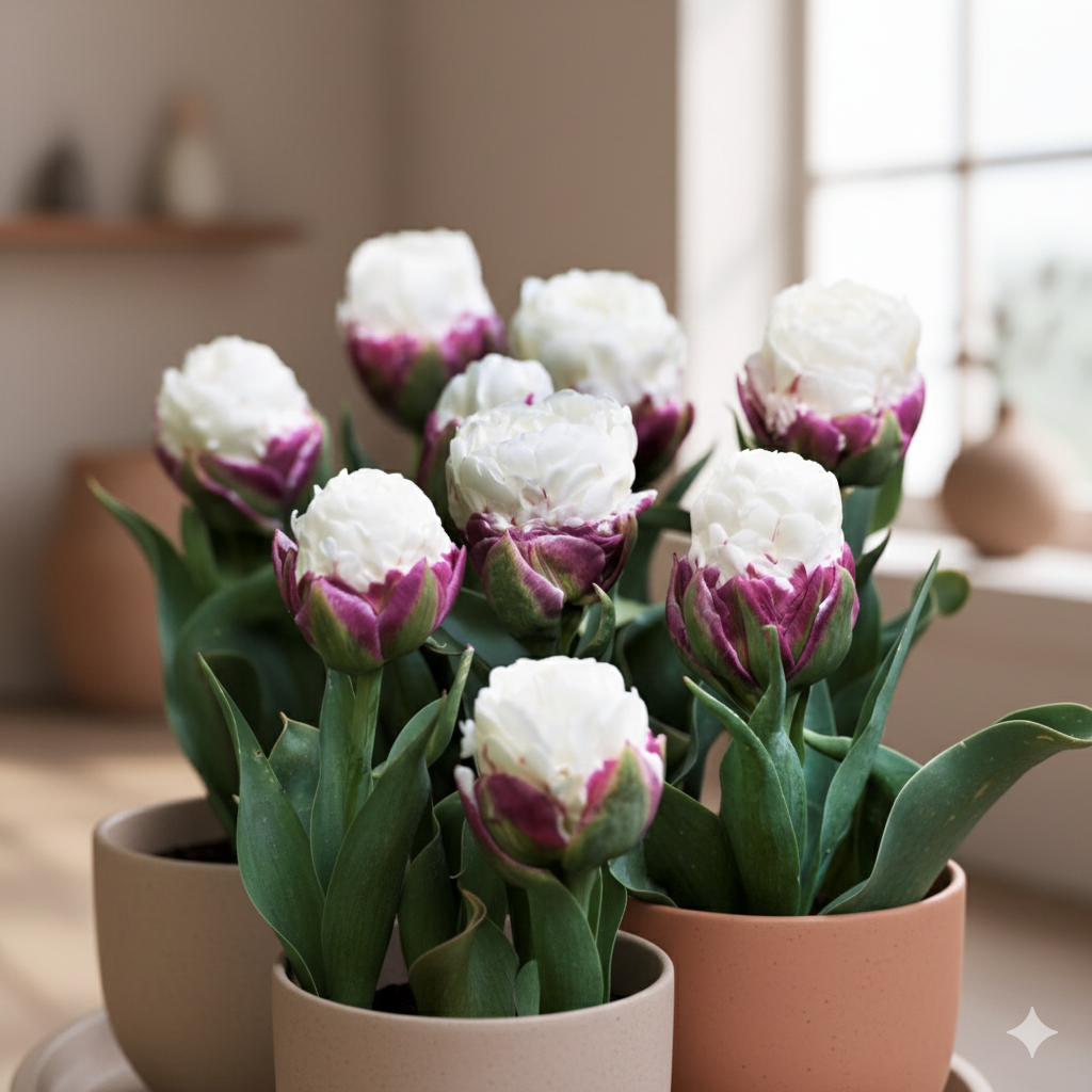 Для успішного вирощування тюльпанів «Ice Cream» у кімнатних умовах оберіть світле місце з м’яким, розсіяним освітленням.